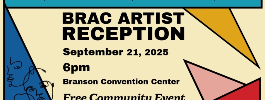 Join the Branson Regional Arts Council on Sunday, September 21st at 6pm for our next Artist Reception and Member Reception at the Branson Convention Center!