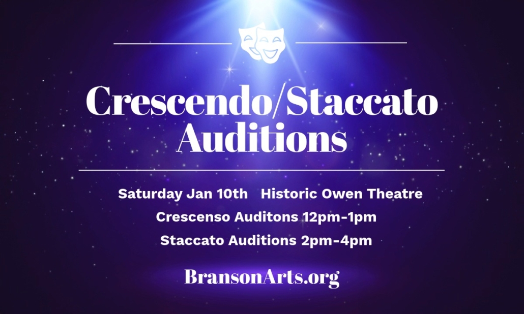 Crescendo and Staccato Audition Announcement!! Auditions will be held on Saturday, January 10, 2026 at the Historic Owen Theatre.