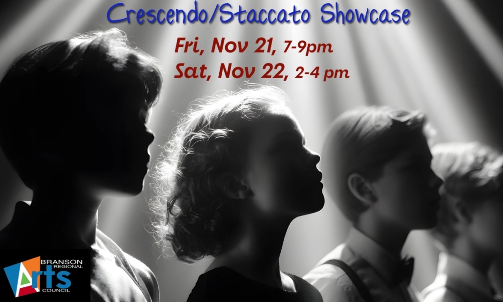 Join us for an exciting weekend celebrating the incredible talent of our young performers! The Branson Regional Arts Council proudly presents our Youth Showcase, featuring performances by our two youth theatre troupes, Staccato and Crescendo.